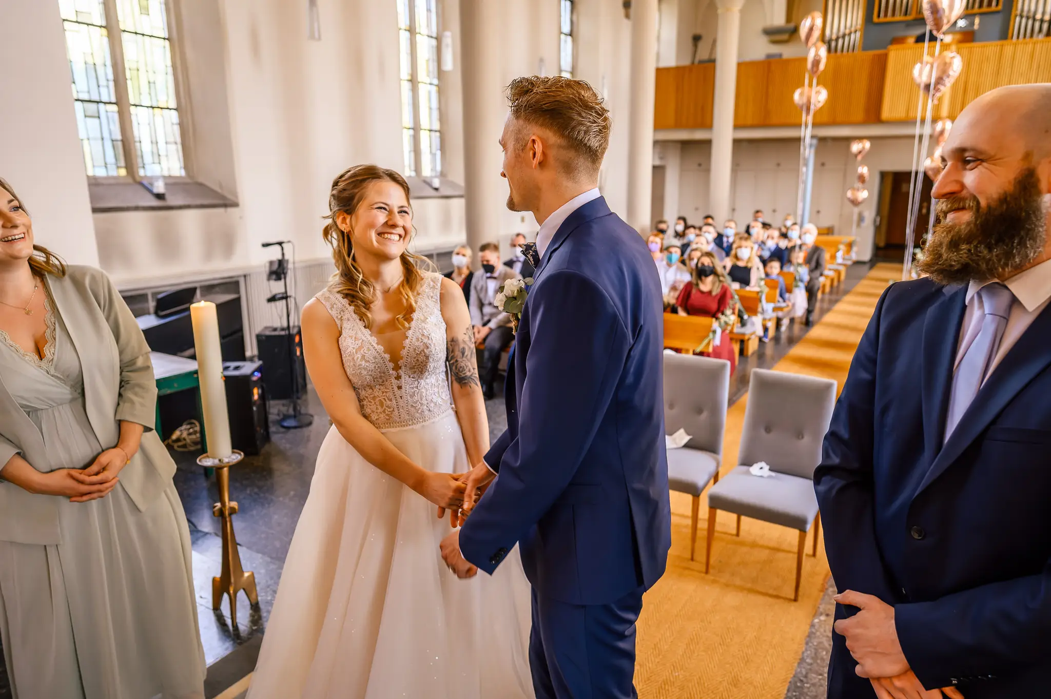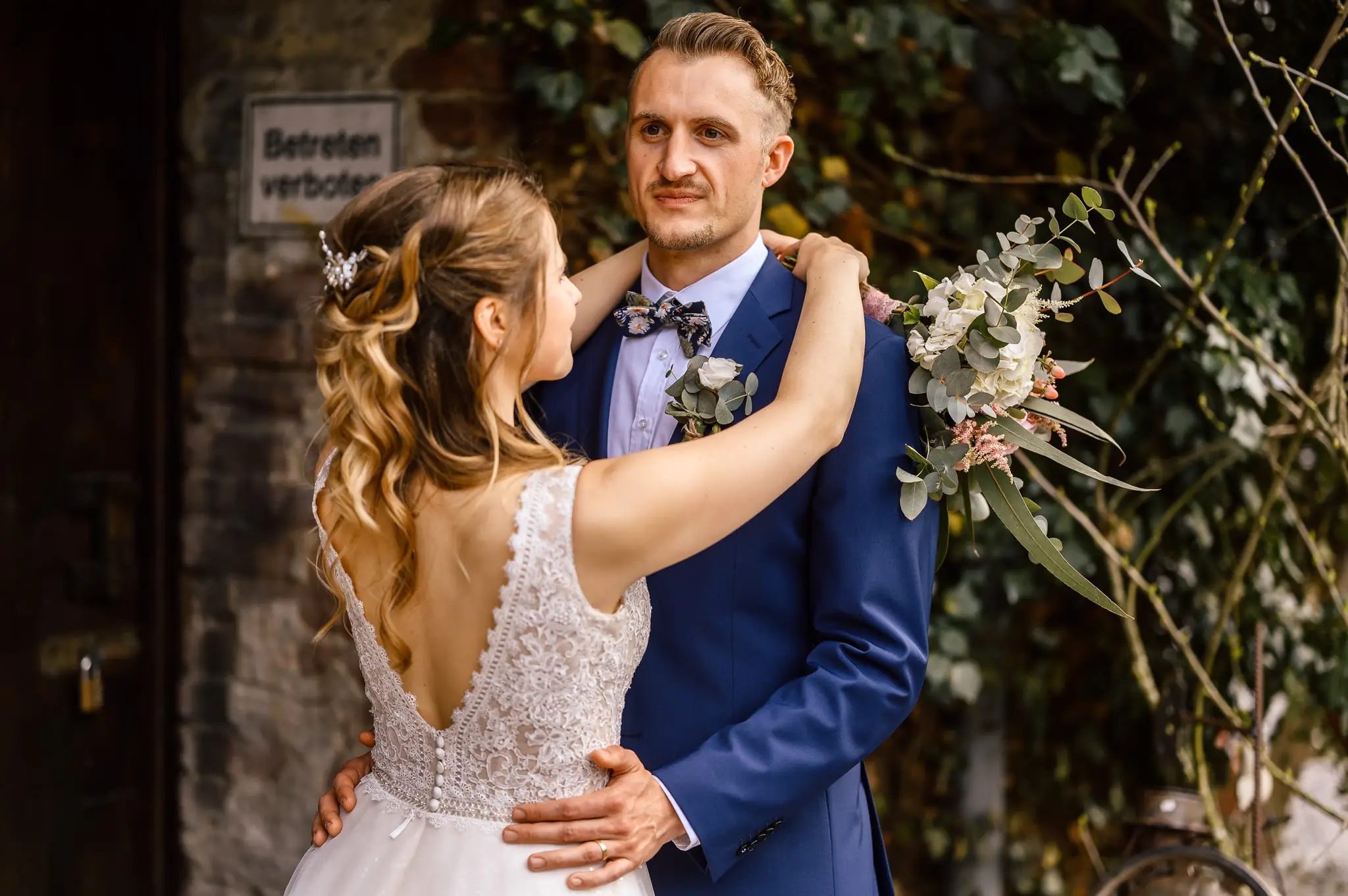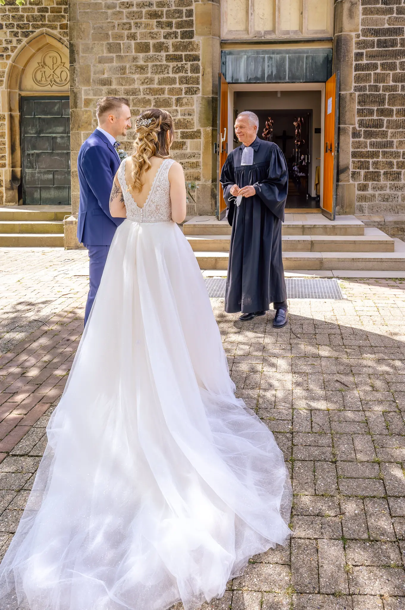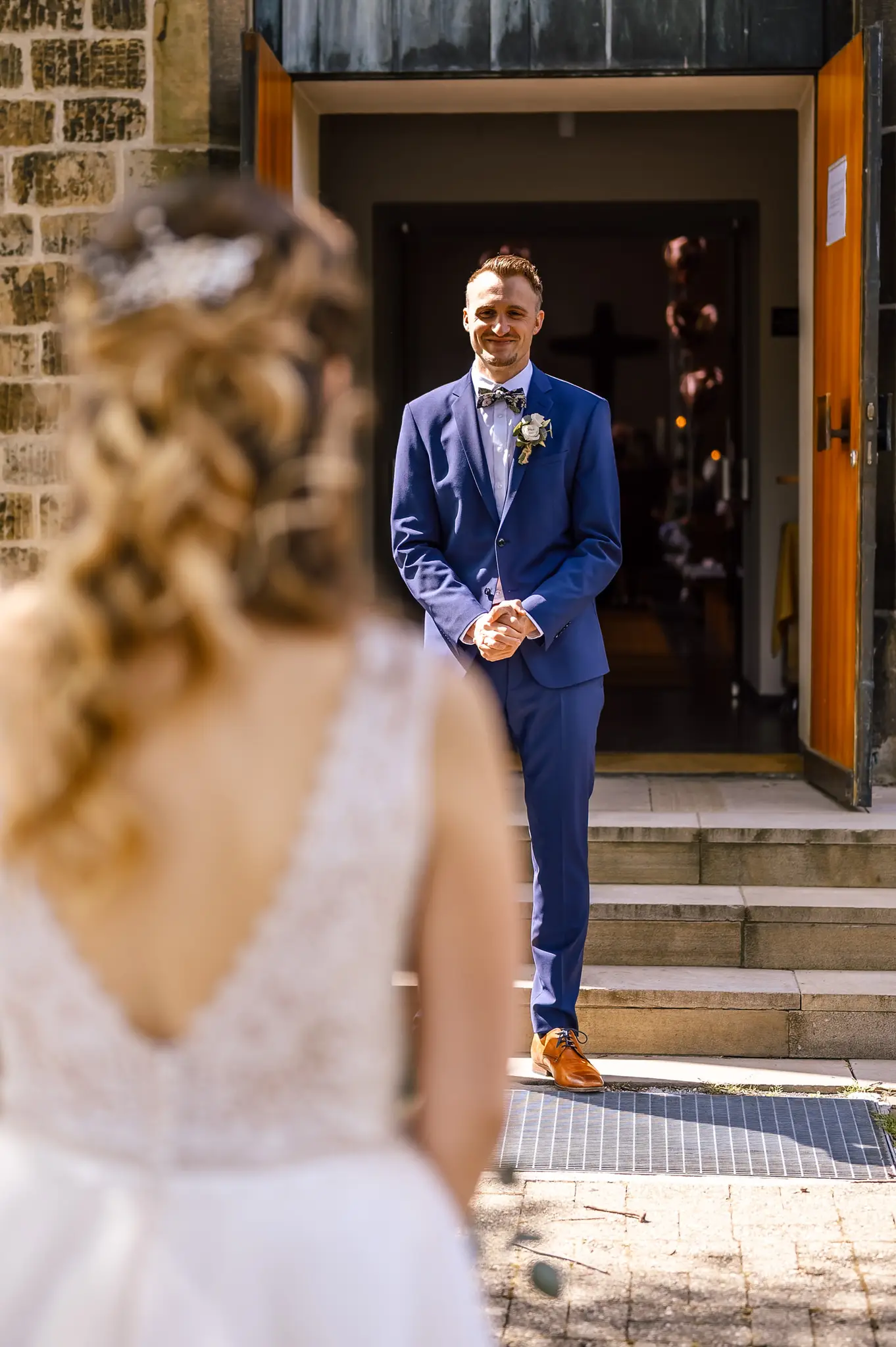 Die kirchliche Trauung fand in der ev. Kirche in Silschede statt, unweit des Wohnorts der beiden. Der First Look erfolgte vor der Kirche, nachdem alle Gäste bereits in der Kirche waren. Auch wenn Anna & Torben bereits standesamtlich geheiratet hatten und auch schon länger zusammen lebten, es war ein sehr bewegender Moment für die beiden. Nach altem Brauch wurden die beiden dann noch von Anna’s Mutter gesegnet bevor sie vom Pastor in die Kirche begleitet wurden.