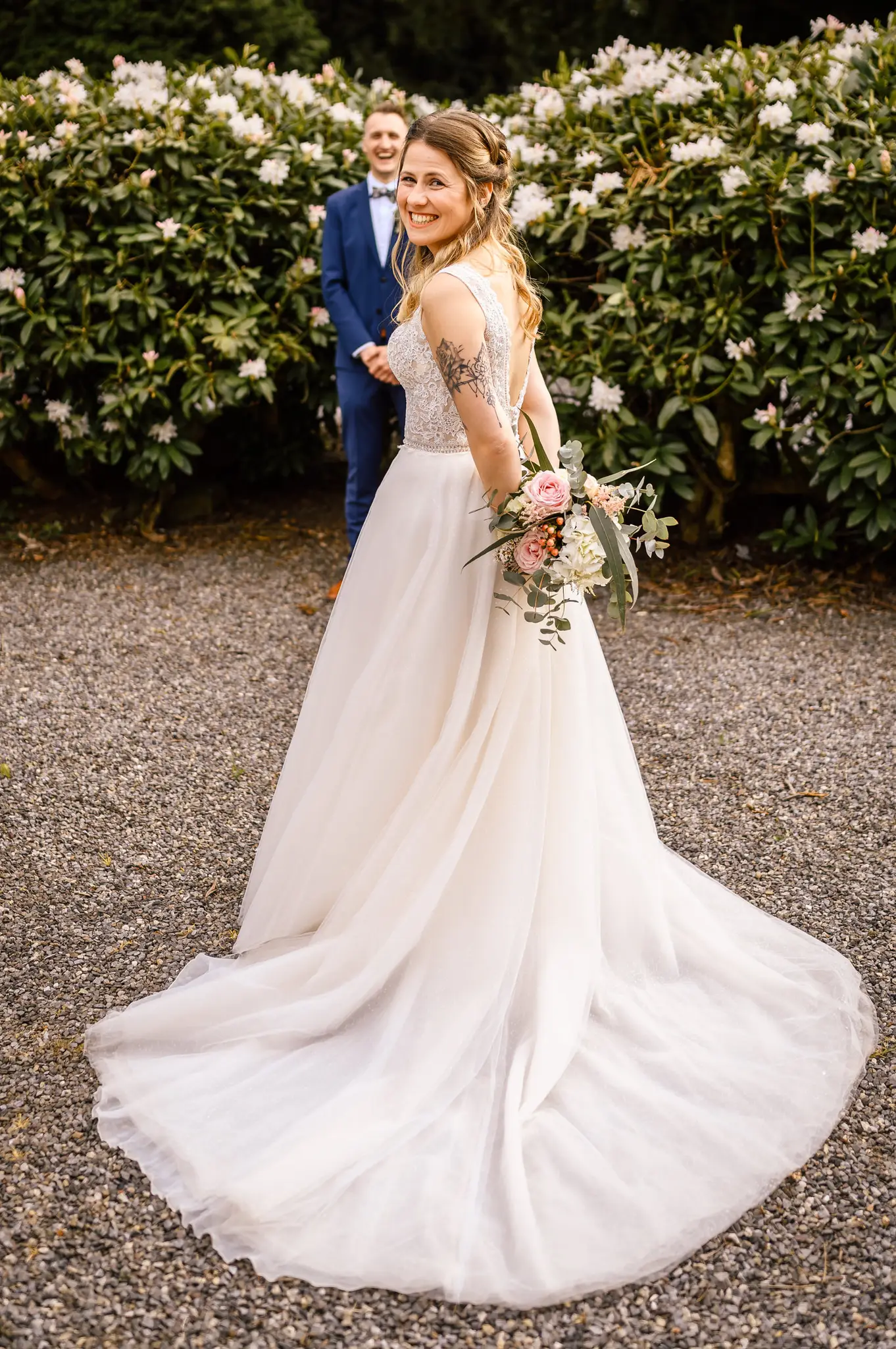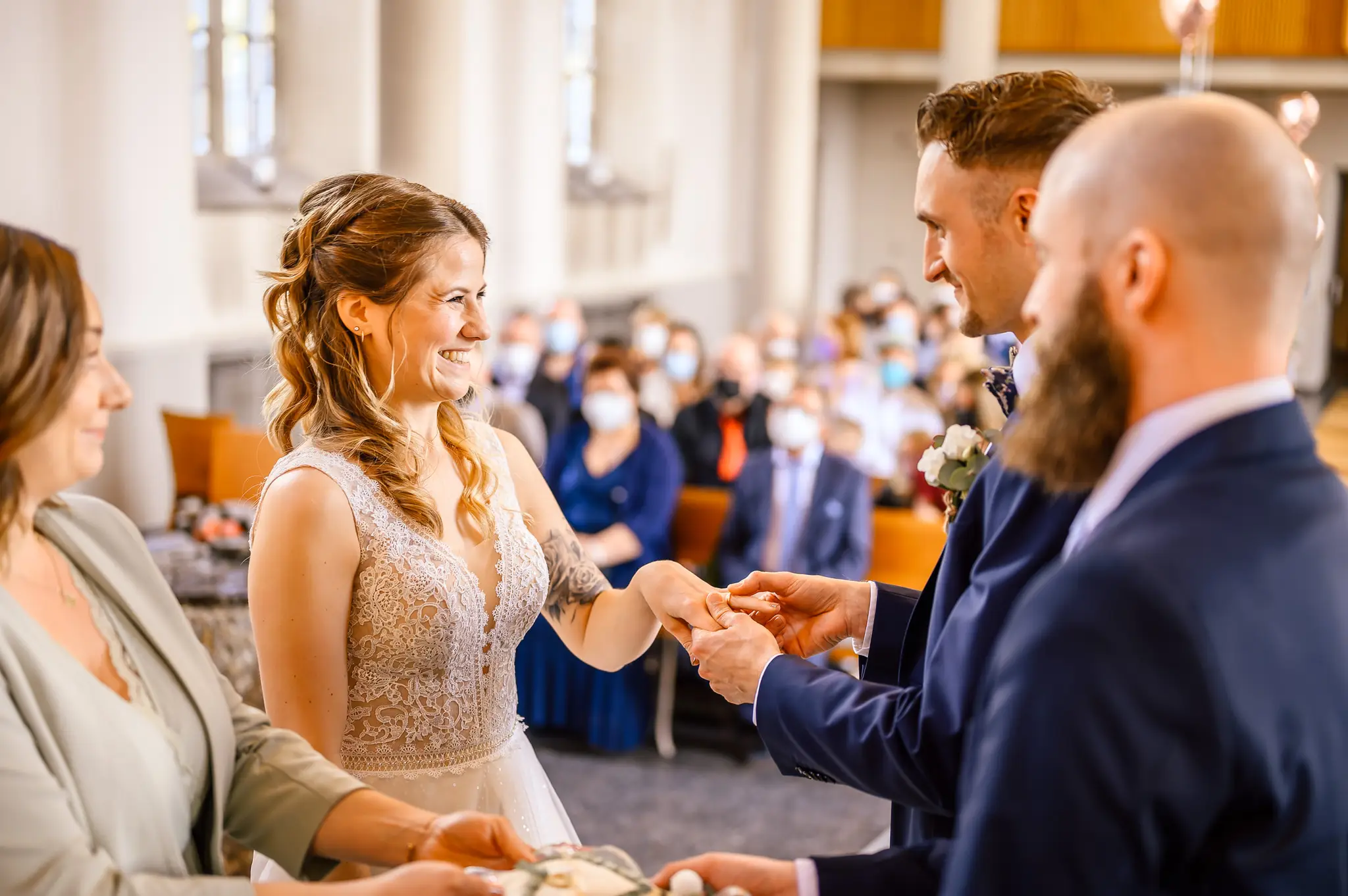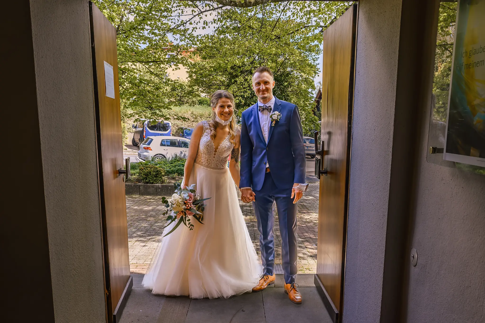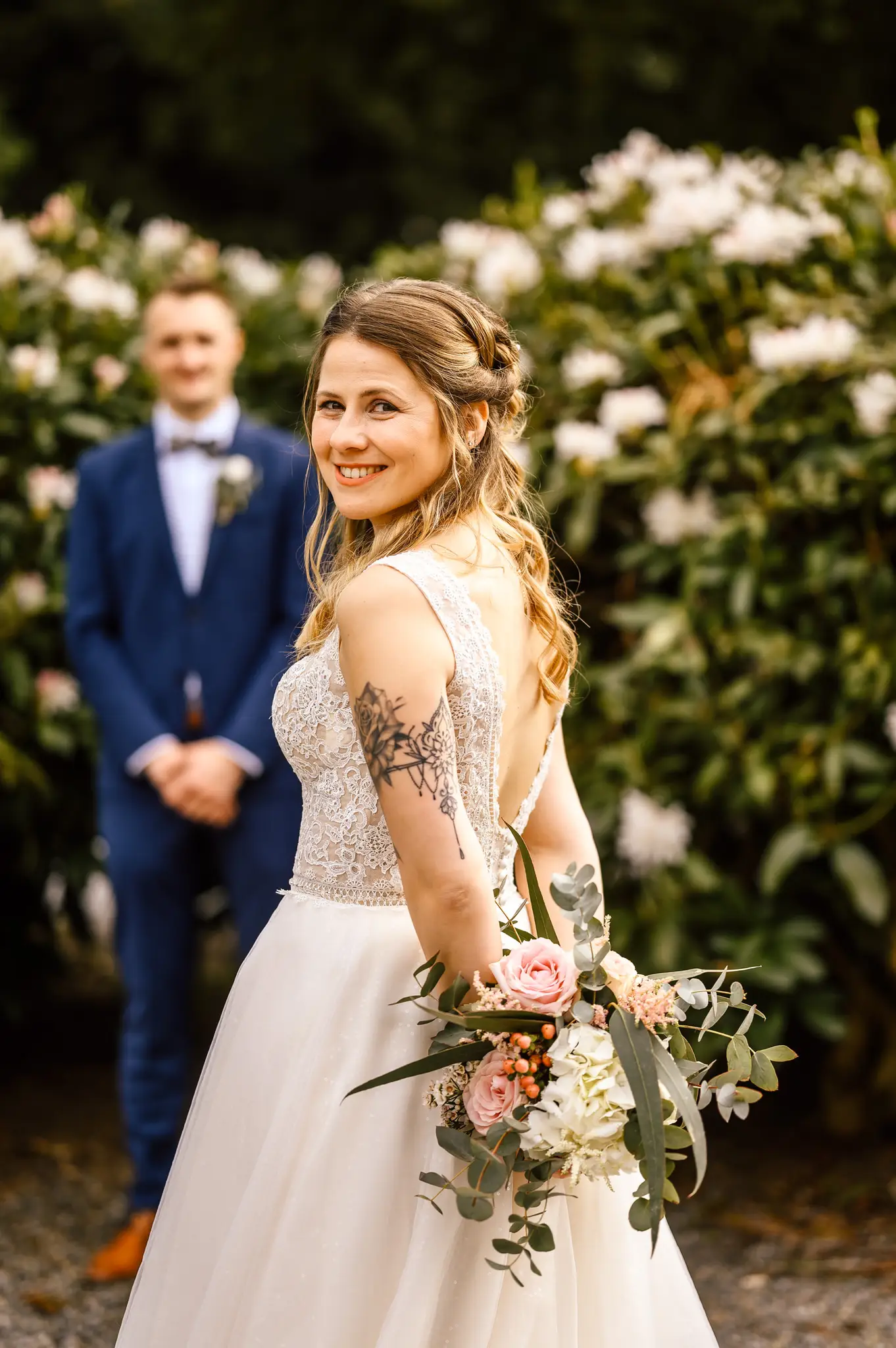Die kirchliche Trauung fand in der ev. Kirche in Silschede statt, unweit des Wohnorts der beiden. Der First Look erfolgte vor der Kirche, nachdem alle Gäste bereits in der Kirche waren. Auch wenn Anna & Torben bereits standesamtlich geheiratet hatten und auch schon länger zusammen lebten, es war ein sehr bewegender Moment für die beiden. Nach altem Brauch wurden die beiden dann noch von Anna’s Mutter gesegnet bevor sie vom Pastor in die Kirche begleitet wurden.