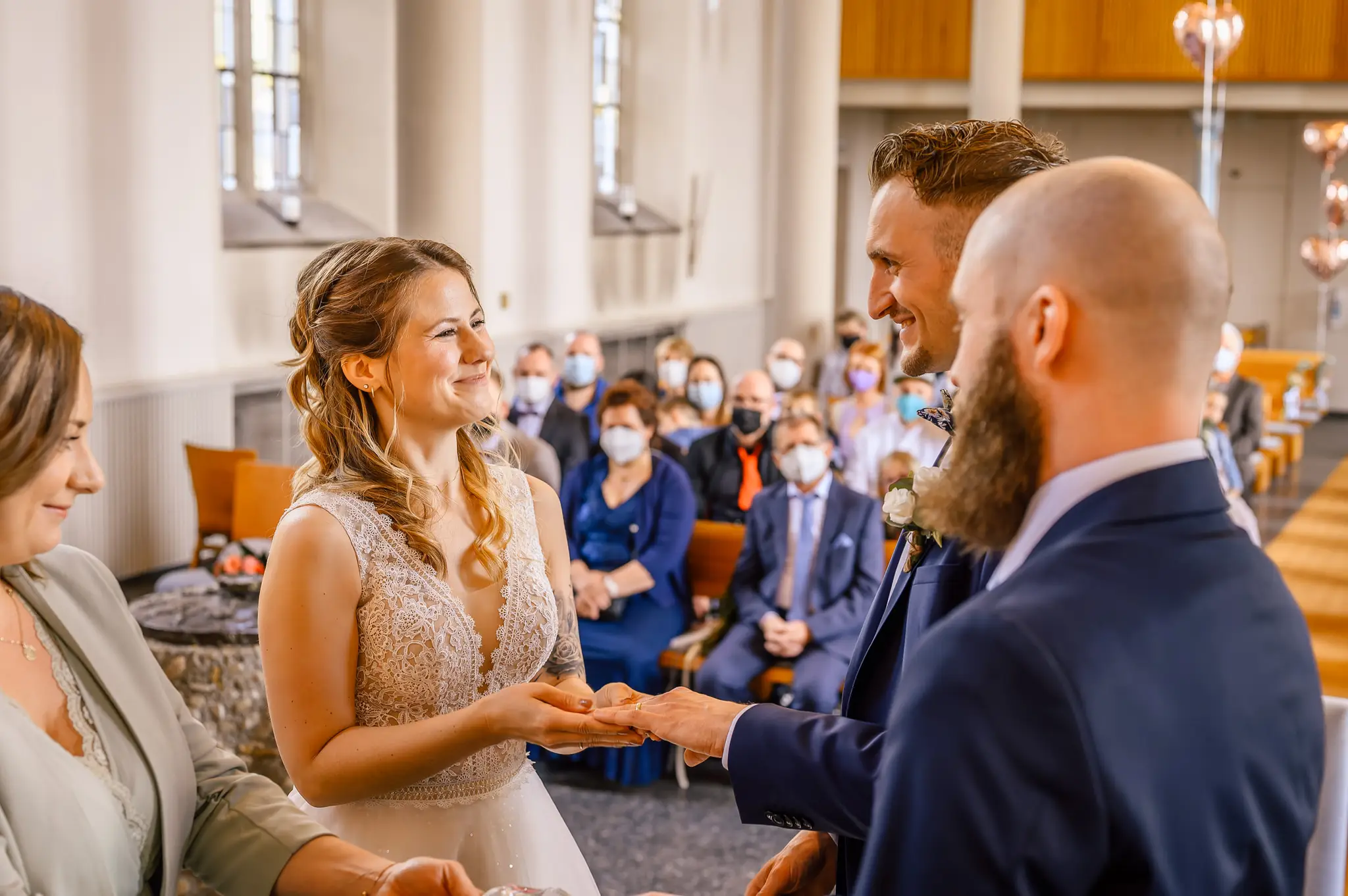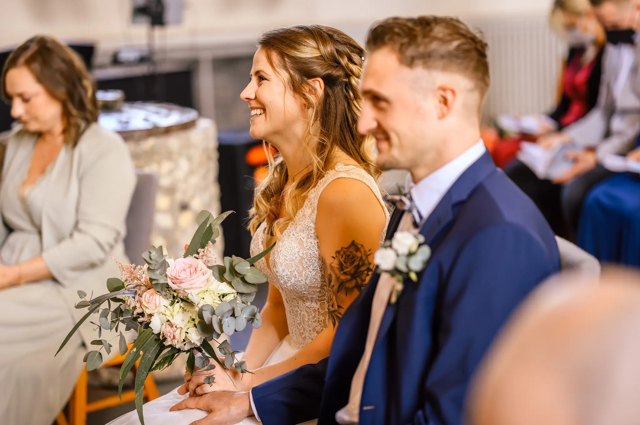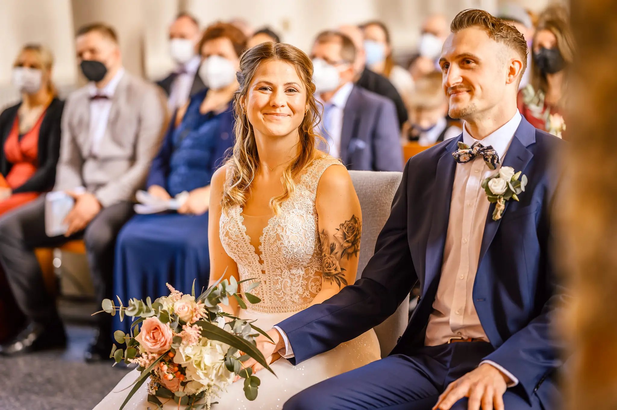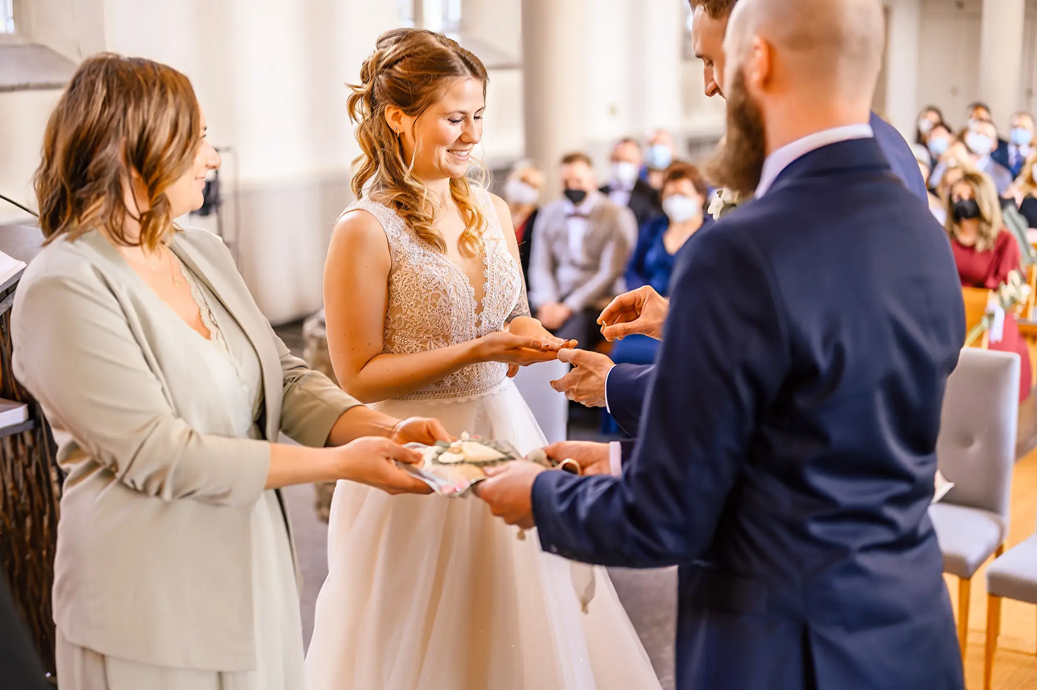 Die kirchliche Trauung fand in der ev. Kirche in Silschede statt, unweit des Wohnorts der beiden. Der First Look erfolgte vor der Kirche, nachdem alle Gäste bereits in der Kirche waren. Auch wenn Anna & Torben bereits standesamtlich geheiratet hatten und auch schon länger zusammen lebten, es war ein sehr bewegender Moment für die beiden. Nach altem Brauch wurden die beiden dann noch von Anna’s Mutter gesegnet bevor sie vom Pastor in die Kirche begleitet wurden.