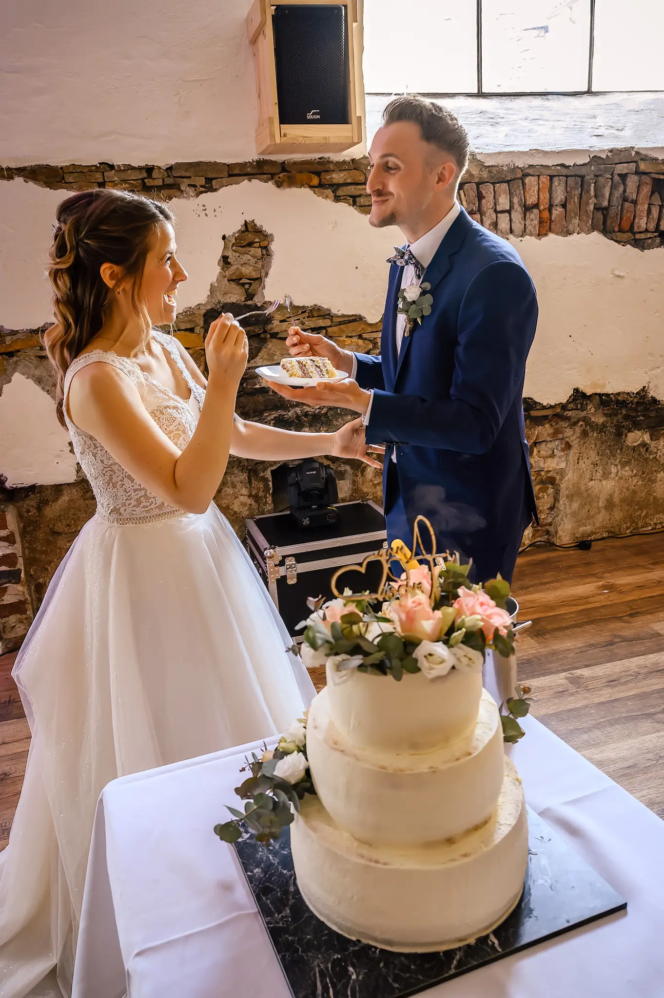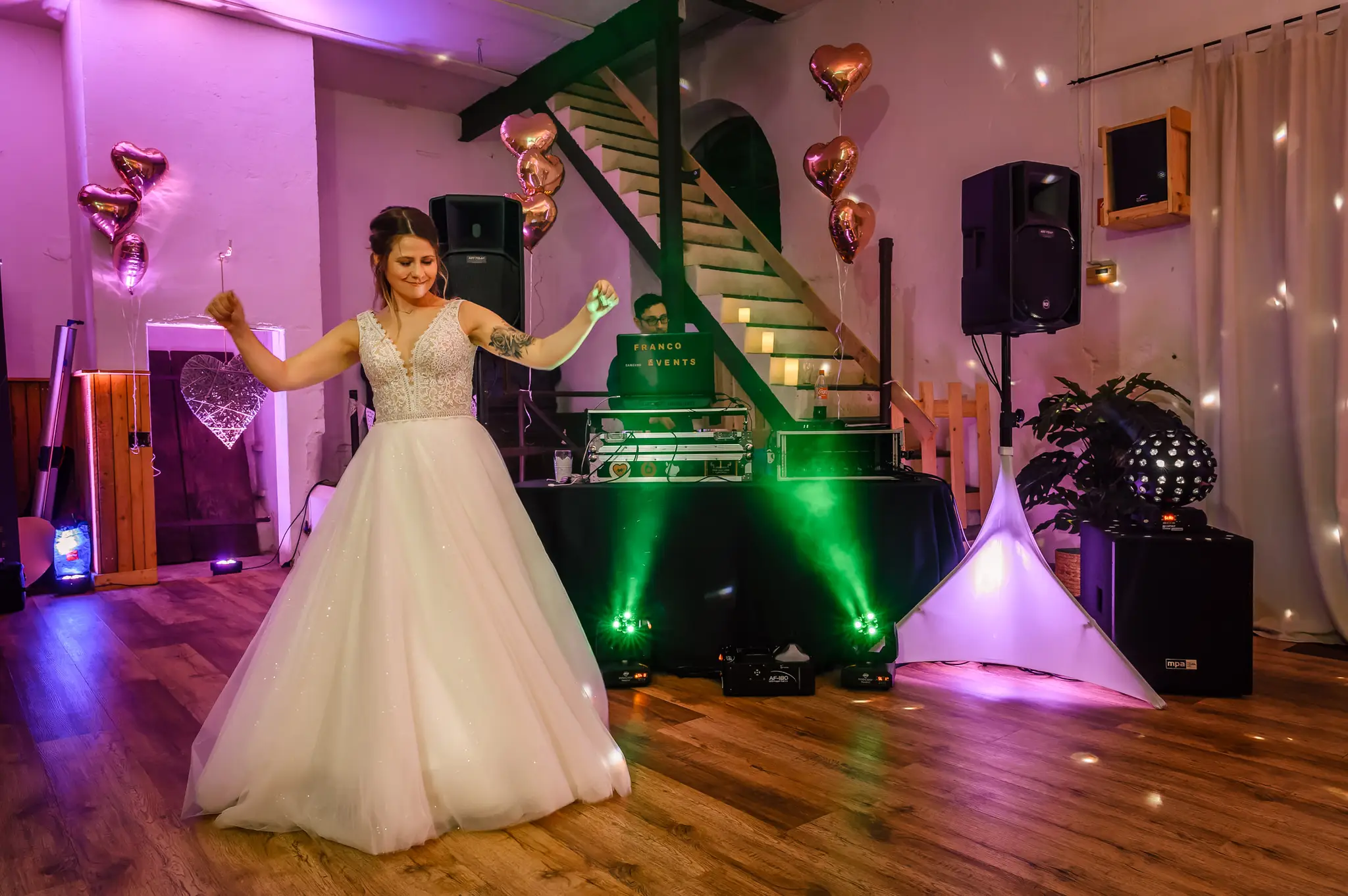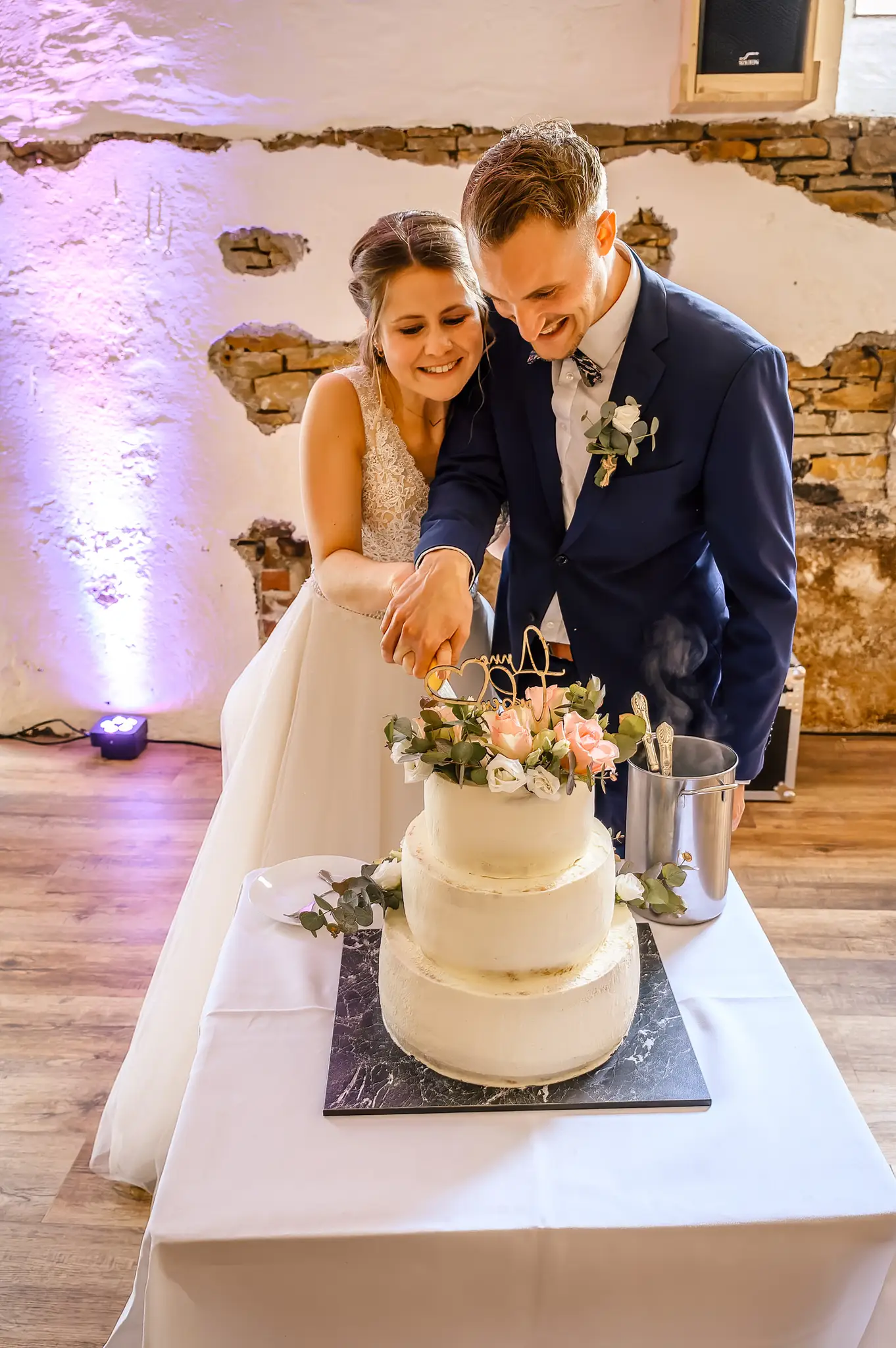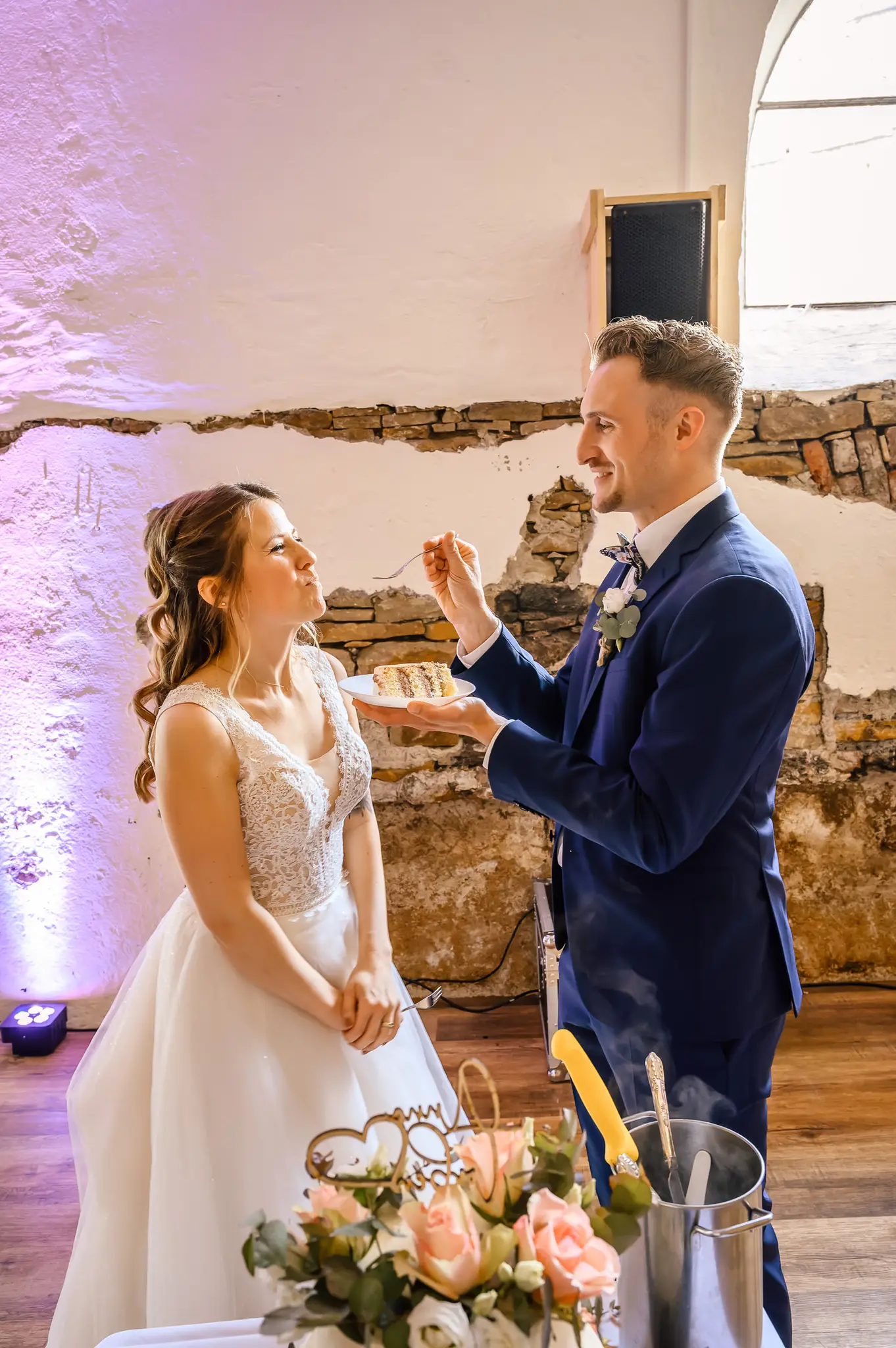 Die anschließende Feier fand dann im „Kuhstall“ auf Schloss Steinhausen in Witten statt. Die Kühe sind hier schon lange ausgezogen und so fanden alle Gäste an den schön geschmückten Tischen ausreichend Platz. Im kleinen Schlosspark erfolge dann auch die Foto-Session mit dem Brautpaar. Gefeiert wurde bis weit nach Mitternacht und so wurde aus der Hochzeit noch ein „Tanz in den Mai“.