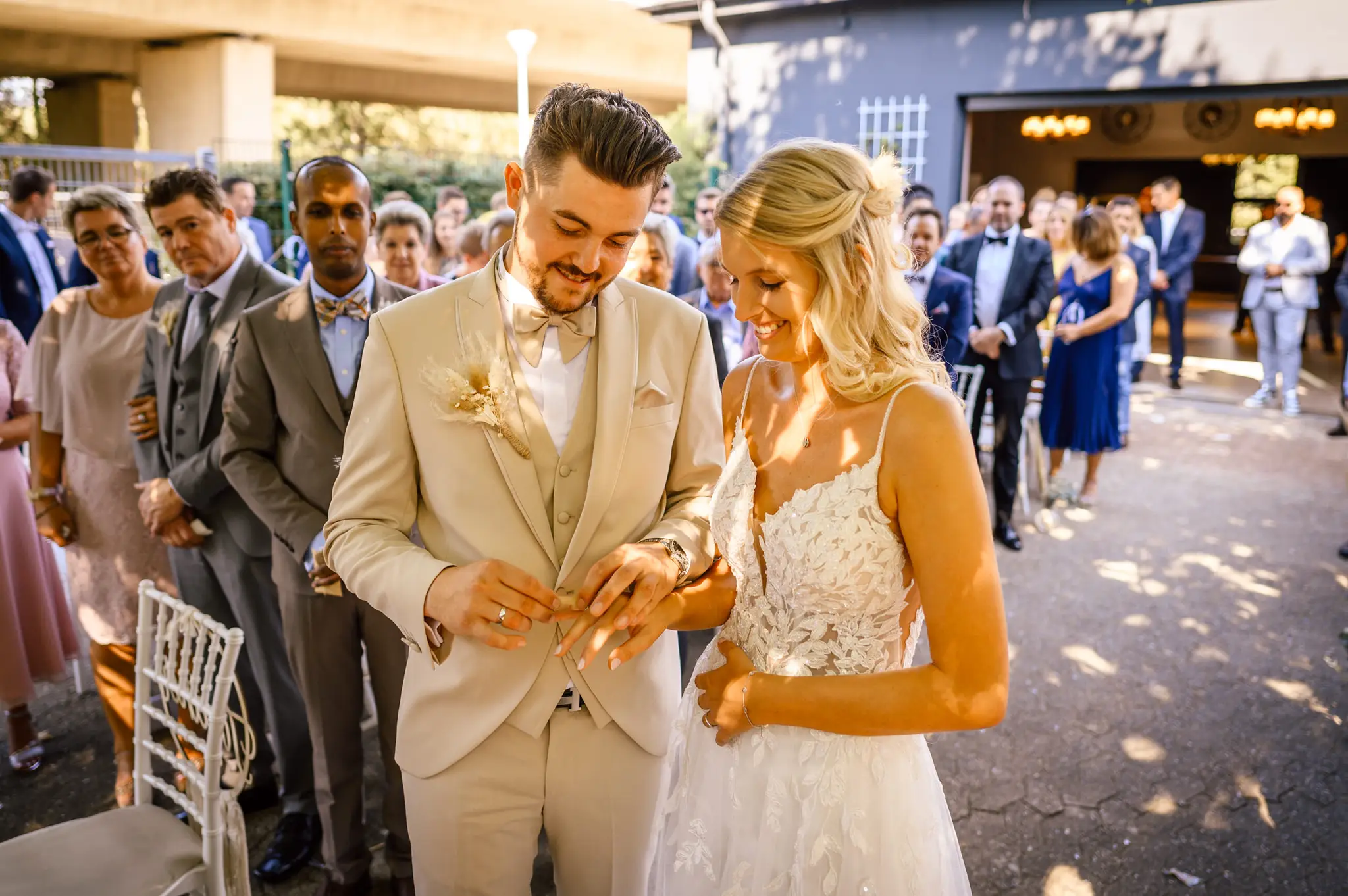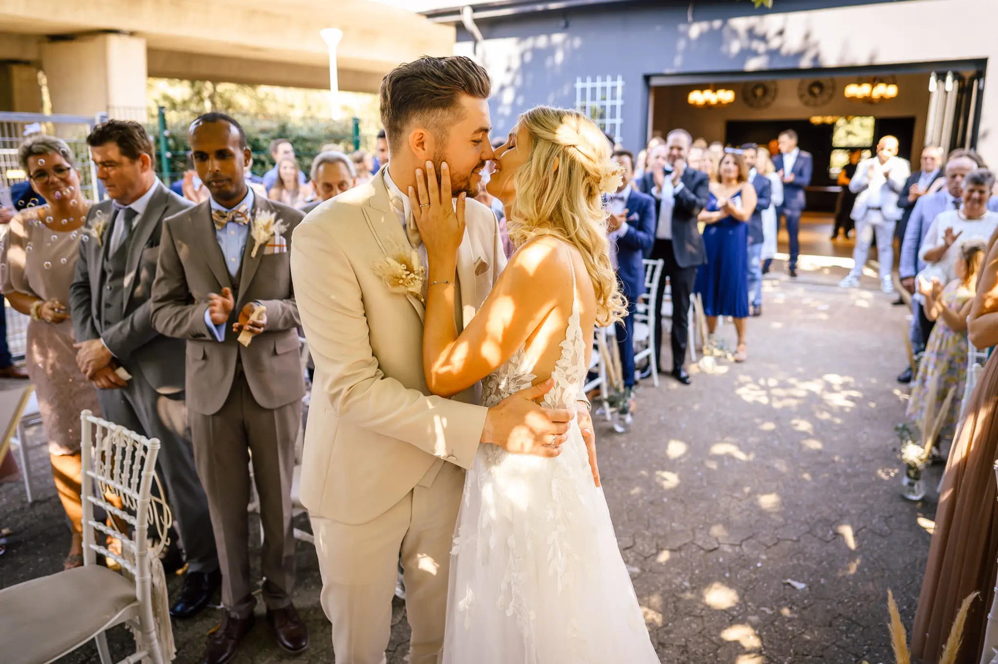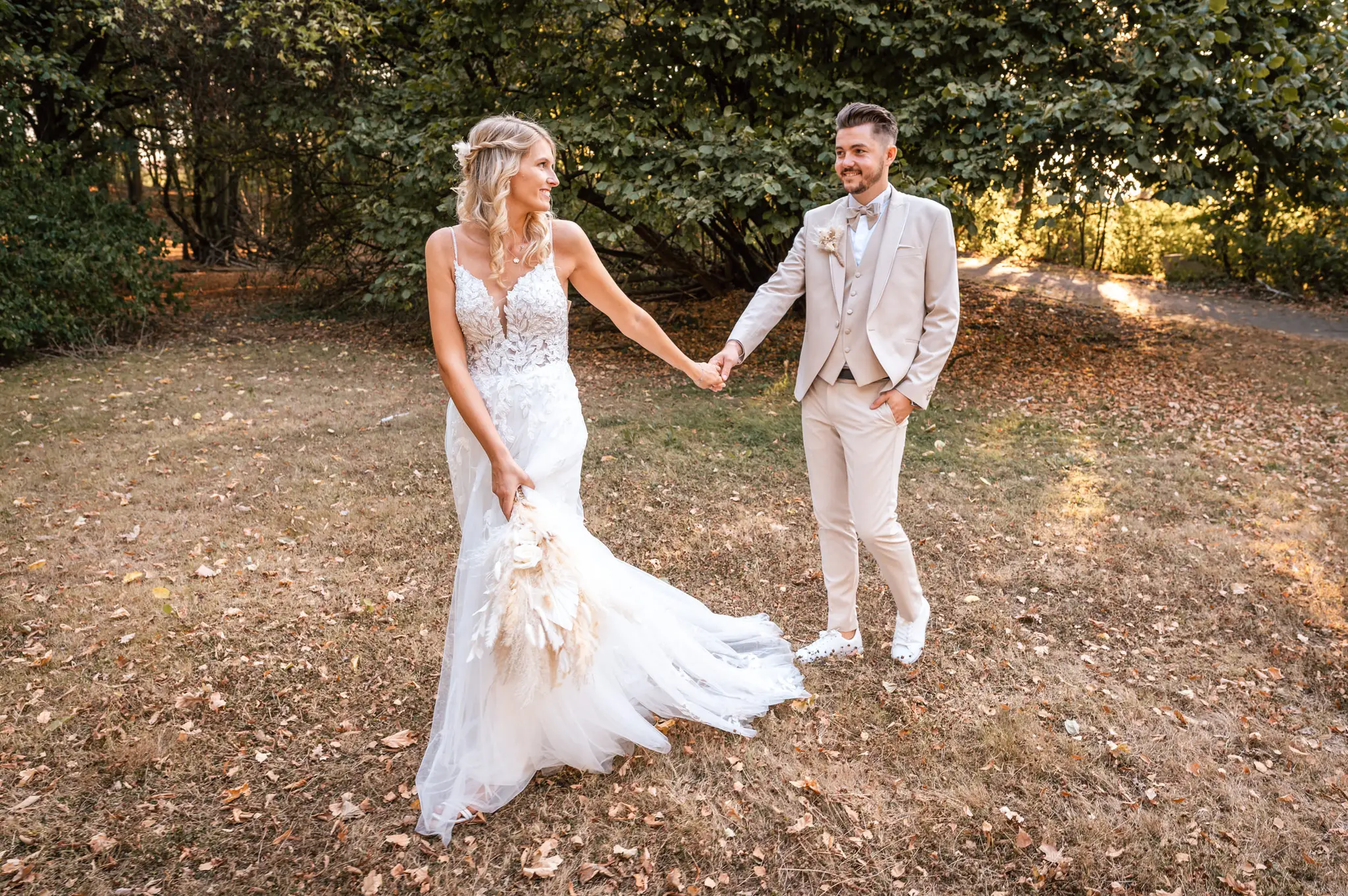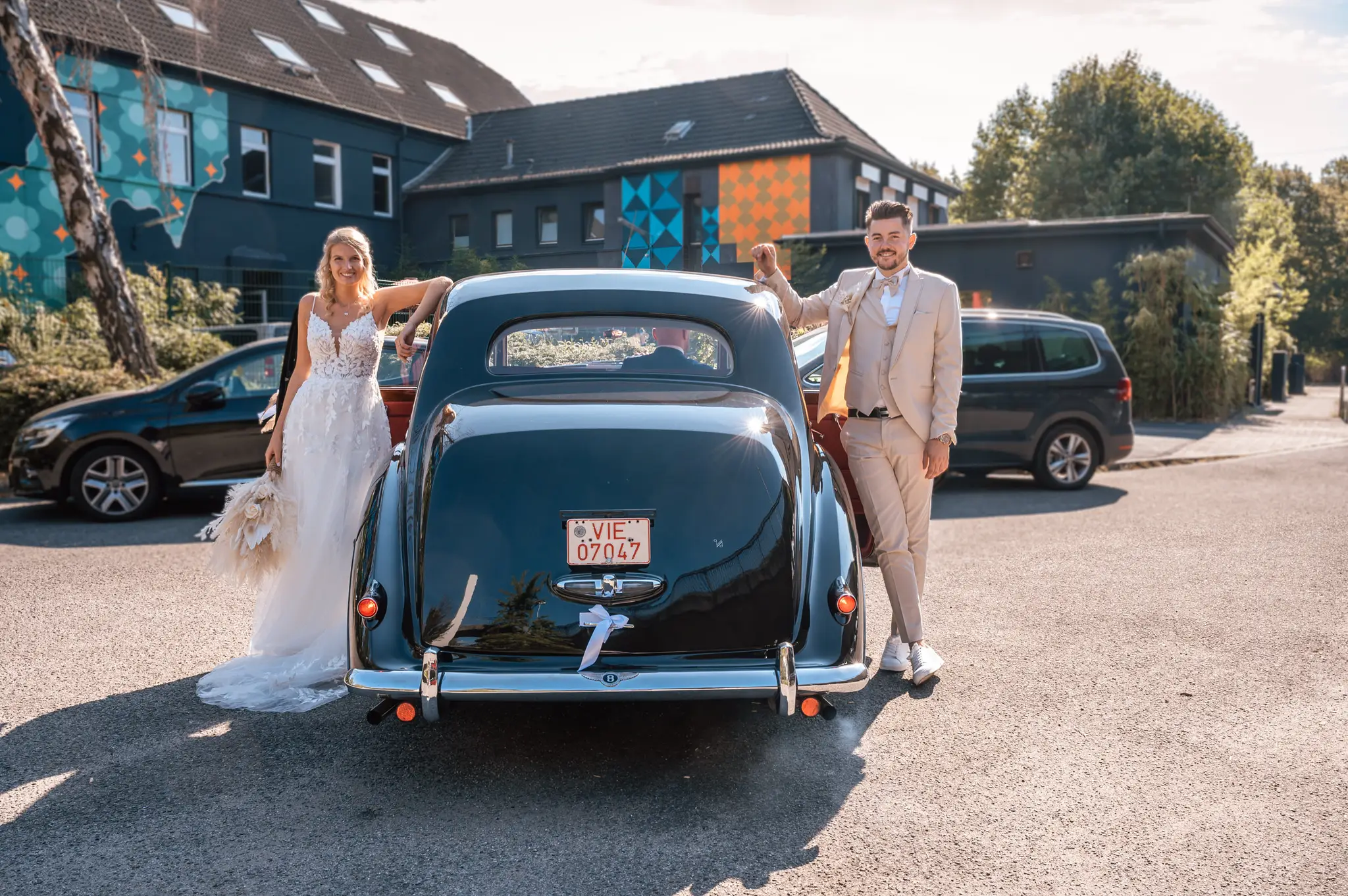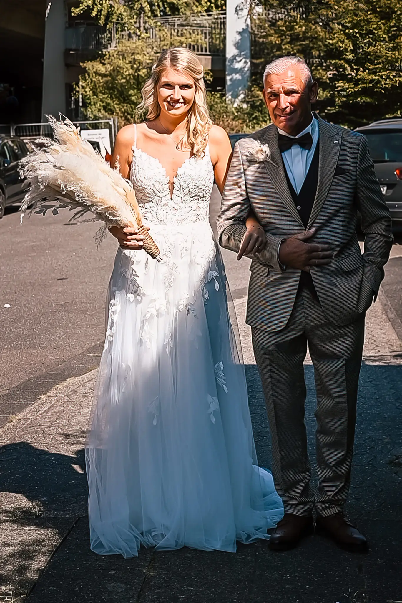 Laura und Daniel hatten sich für eine freie Trauung im Boho Stil entschieden. Während sich Daniel im Kreise seiner Freunde zu Hause fertig machte, dann das Getting Ready bei einer der Brautjungfern statt. Die freie Trauung fand dann unter einem großen Baum in der  Eventlocation „Stahlhaus“ in Krefeld statt. Die Braut wurde in einem wunderschönen Oldtimer zur Location gefahren und von ihrem Vater zum Ort der Trauung begleitet. Später machten wir dann in der Umgebung und natürlich auch mit dem Oldtimer ein kleines Brautpaar Shooting. Im Stahlhaus zurück und nach dem Essen, begann der Abend mit dem Brauttanz gefolgt von einer langen Party.
