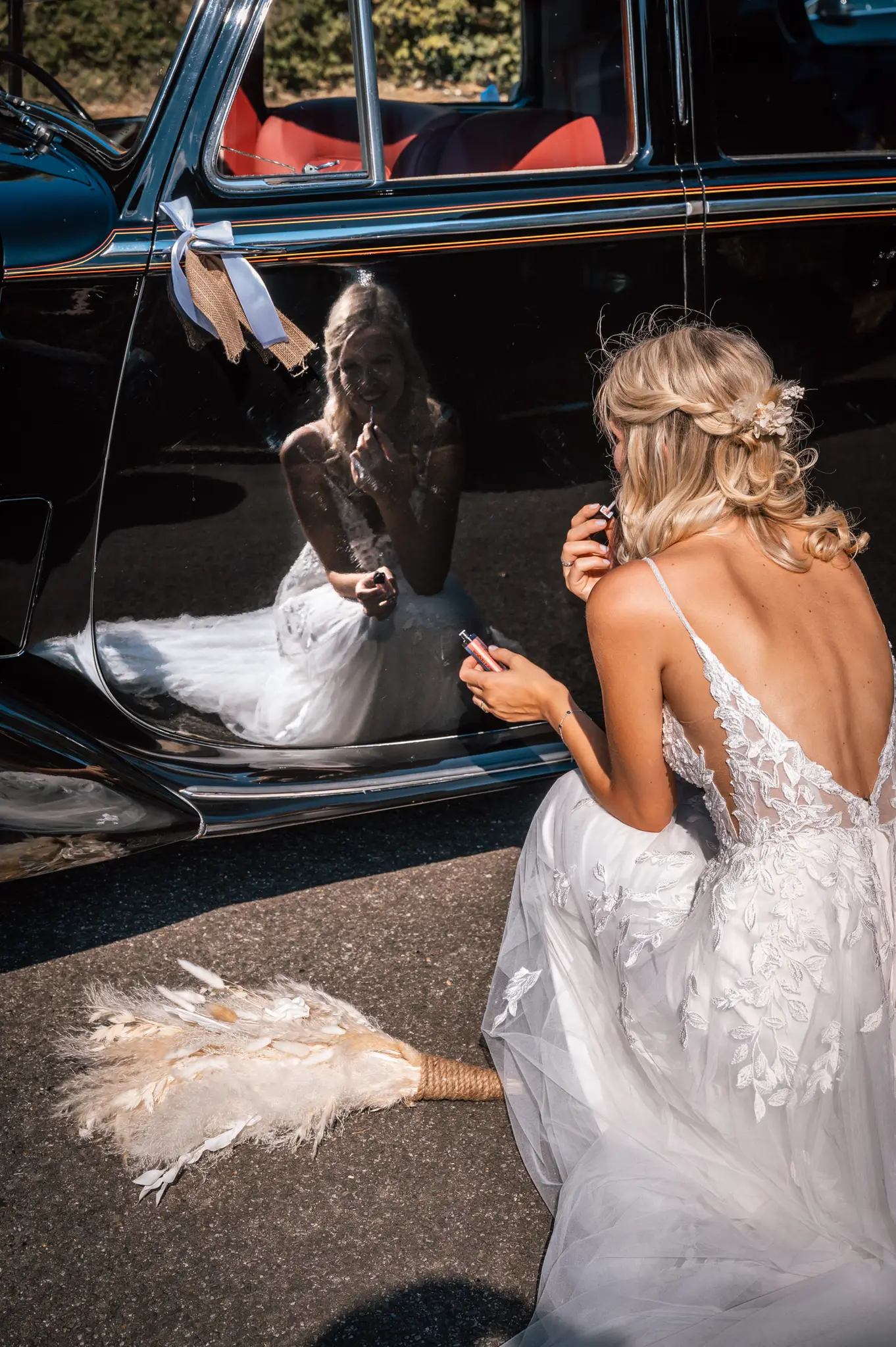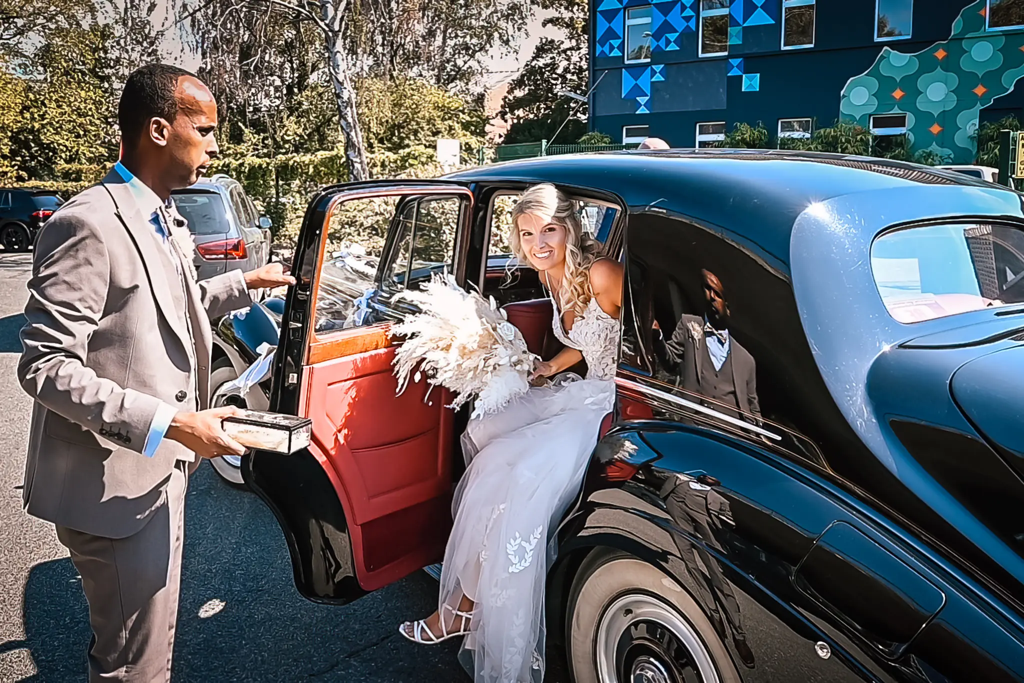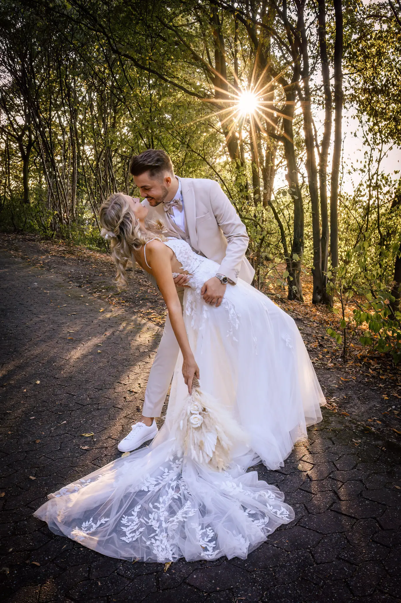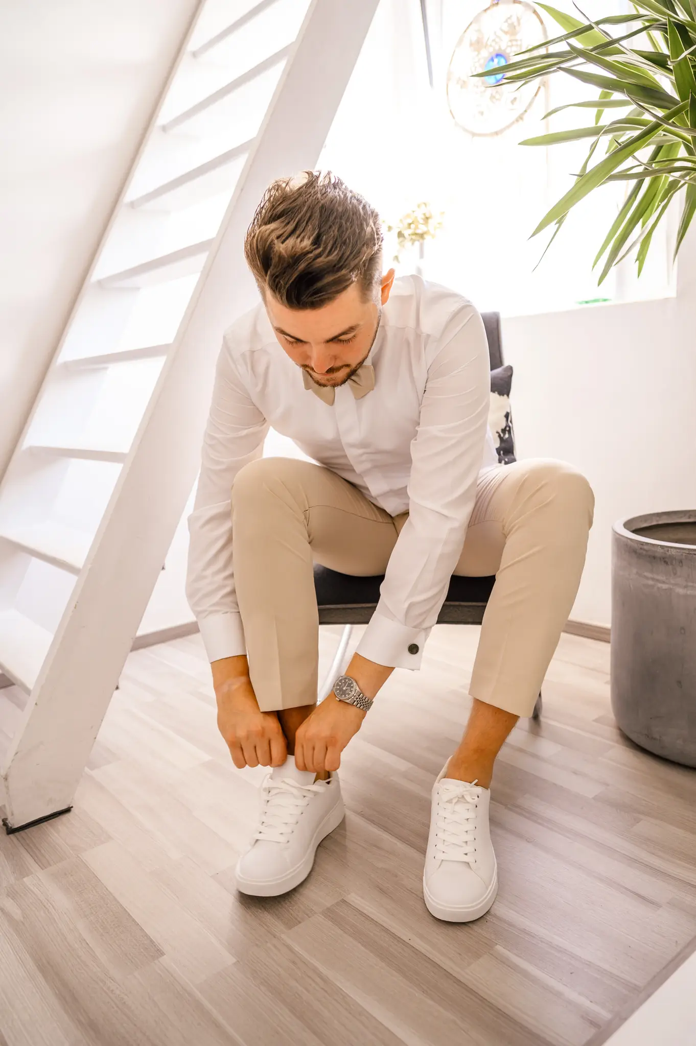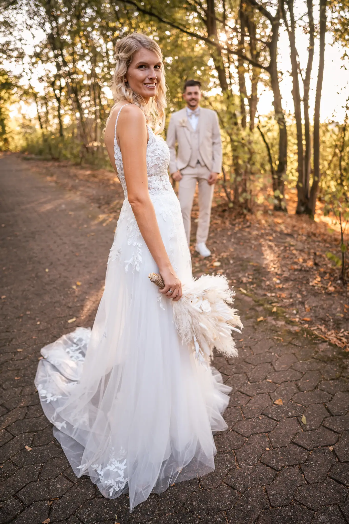 Laura und Daniel hatten sich für eine freie Trauung im Boho Stil entschieden. Während sich Daniel im Kreise seiner Freunde zu Hause fertig machte, dann das Getting Ready bei einer der Brautjungfern statt. Die freie Trauung fand dann unter einem großen Baum in der  Eventlocation „Stahlhaus“ in Krefeld statt. Die Braut wurde in einem wunderschönen Oldtimer zur Location gefahren und von ihrem Vater zum Ort der Trauung begleitet. Später machten wir dann in der Umgebung und natürlich auch mit dem Oldtimer ein kleines Brautpaar Shooting. Im Stahlhaus zurück und nach dem Essen, begann der Abend mit dem Brauttanz gefolgt von einer langen Party.