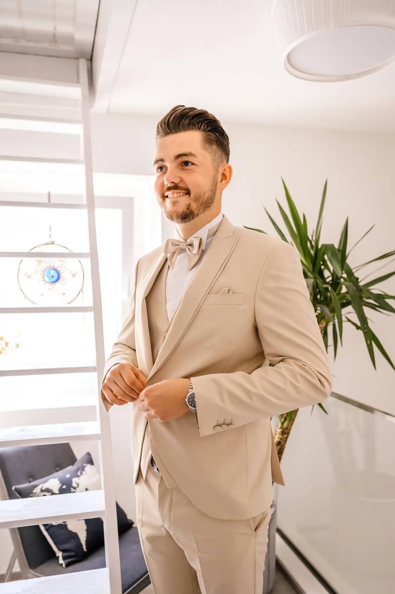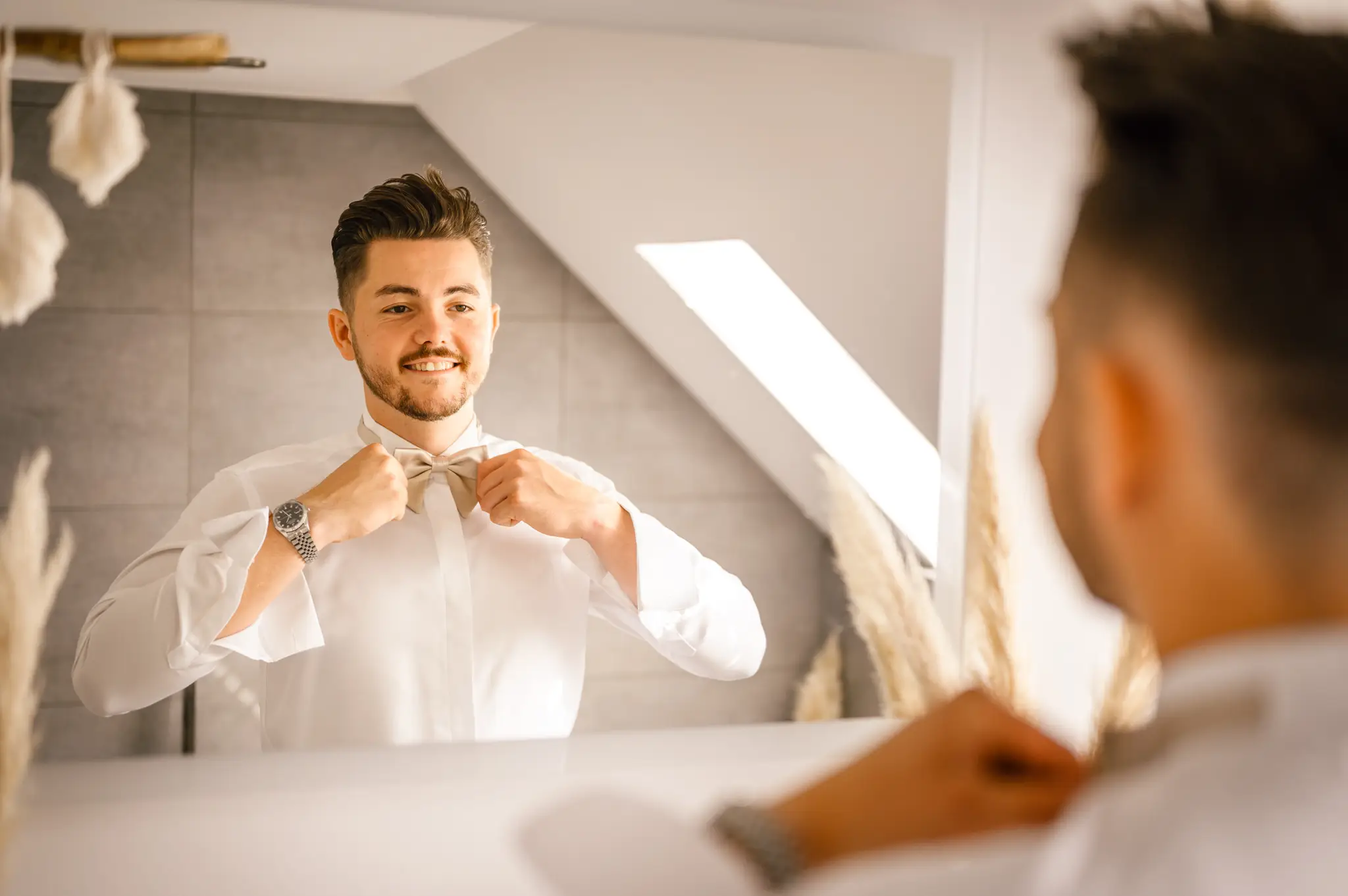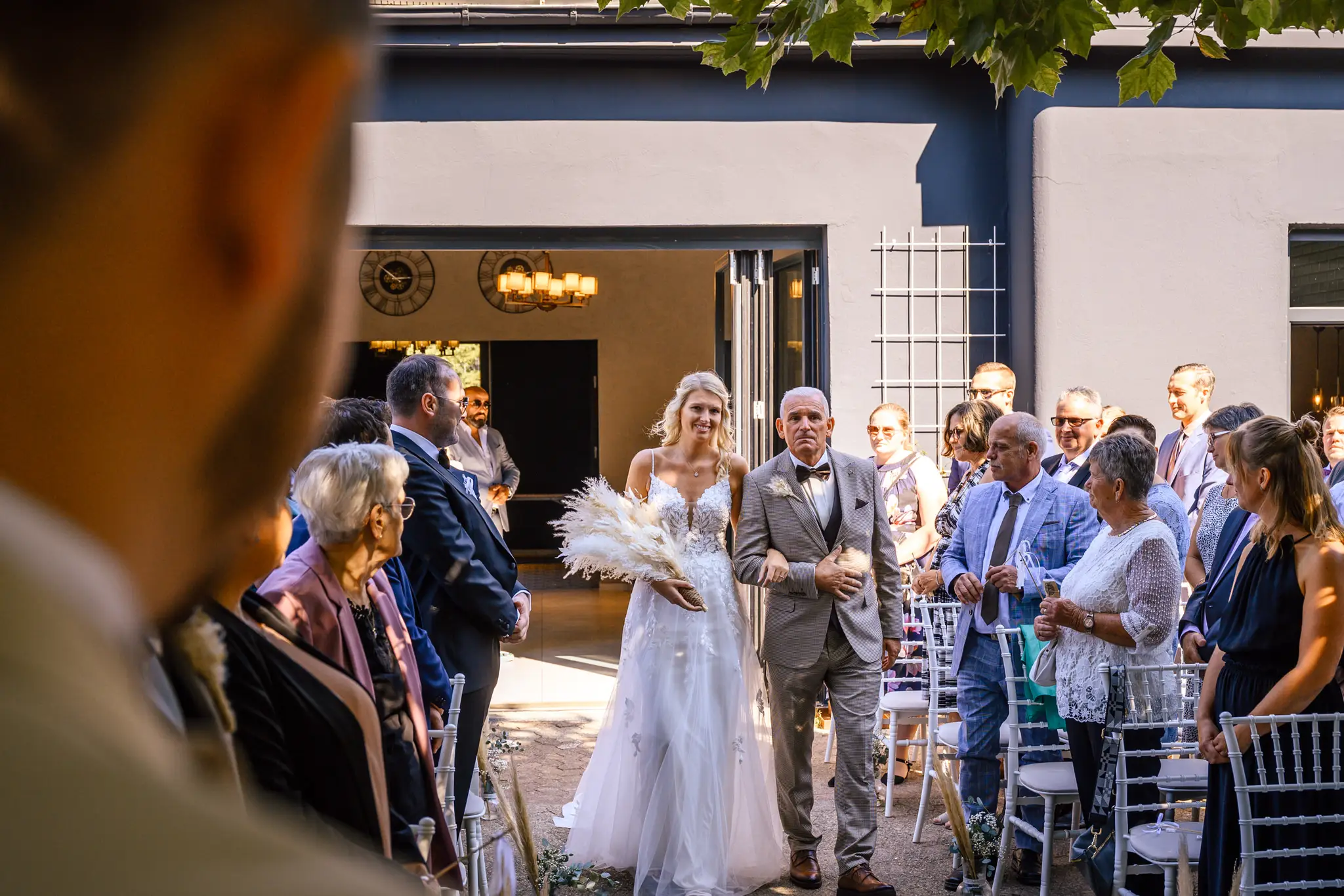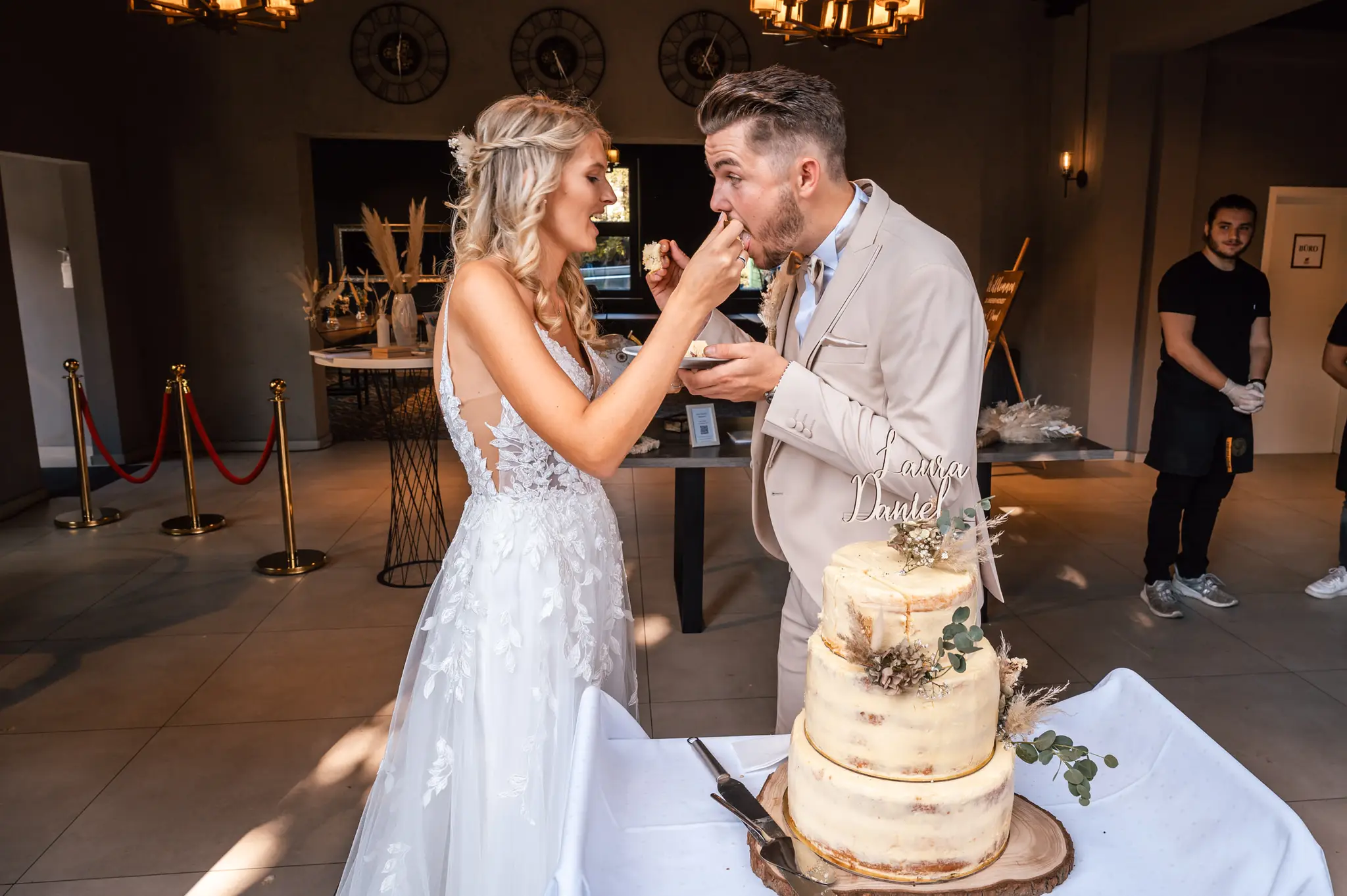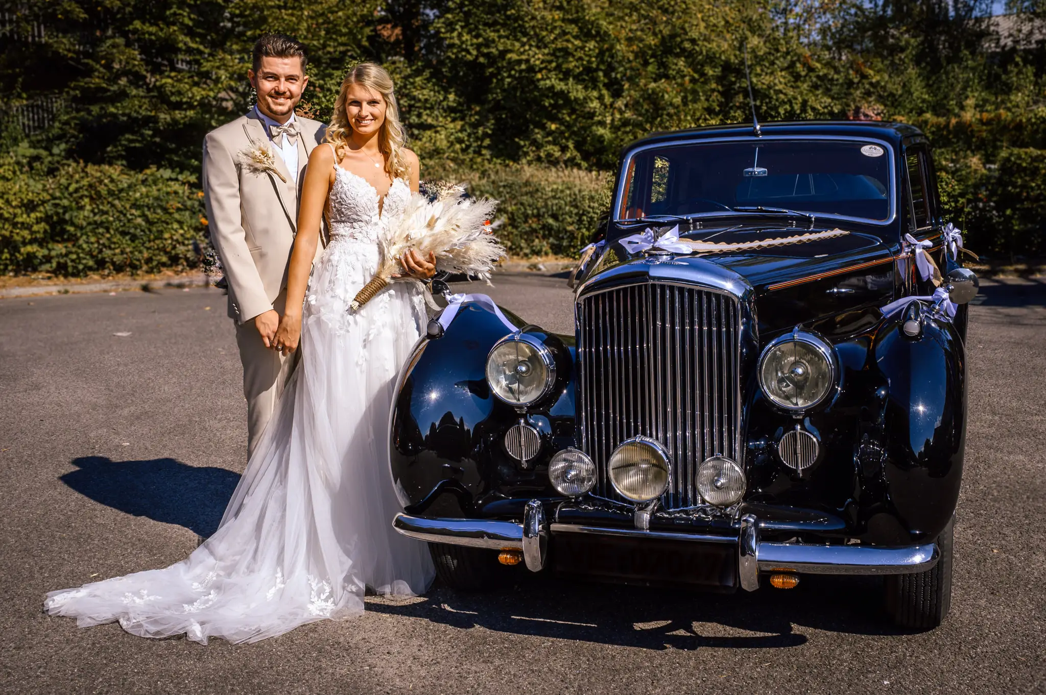 Laura und Daniel hatten sich für eine freie Trauung im Boho Stil entschieden. Während sich Daniel im Kreise seiner Freunde zu Hause fertig machte, dann das Getting Ready bei einer der Brautjungfern statt. Die freie Trauung fand dann unter einem großen Baum in der  Eventlocation „Stahlhaus“ in Krefeld statt. Die Braut wurde in einem wunderschönen Oldtimer zur Location gefahren und von ihrem Vater zum Ort der Trauung begleitet. Später machten wir dann in der Umgebung und natürlich auch mit dem Oldtimer ein kleines Brautpaar Shooting. Im Stahlhaus zurück und nach dem Essen, begann der Abend mit dem Brauttanz gefolgt von einer langen Party.
